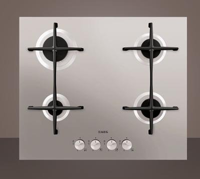 Płyta gazowa AEG HG654320UM wyposażona w 4 palniki z zapalarką oraz zabepieczeniem przeciwwypływowym gazu.
