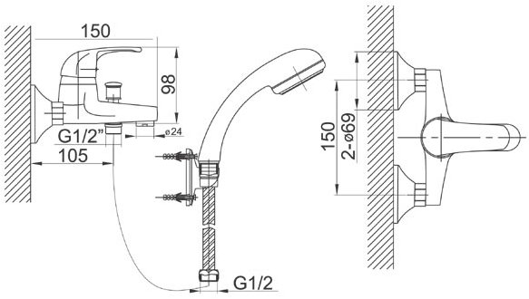 - przyłącze mimośrodowe G1⁄2 rozstaw 150 ± 20 mm