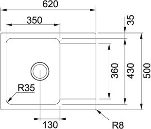 Wymiary zewnętrzne zlewozmywaka: 620 x 500 mm