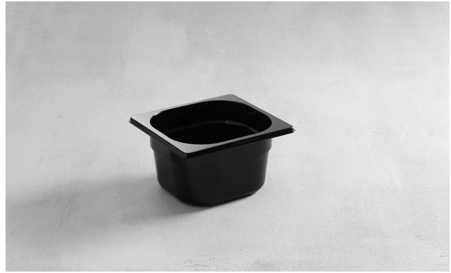 Pojemnik z poliwęglanu GN 1/6 Hendi o numerze katalogowym 862728 wykonany został z czarnego poliwęglanu. Podstawową zaletą modelu jest to, iż nie wchłania smaków i zapachów.