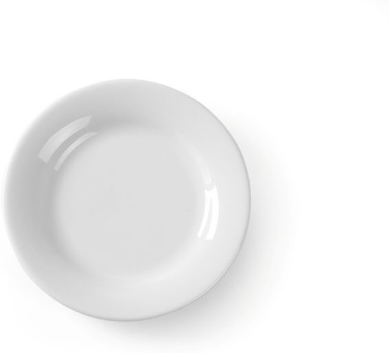 Talerz płytki Optima Hendi o numerze katalogowym 770894 wykonany z wysokogatunkowej białej porcelany hotelowej. Charakteryzuje się wzmocnionymi brzegami oraz bardzo solidną jakością szkliwa.
