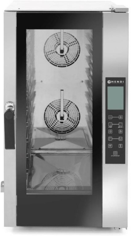 Piec konwekcyjny elektryczny Hendi o numerze katalogowym 224809. Wyposażony w sterowanie elektroniczne. Przeznaczony do restauracji, stołówek, sieci sklepowych, a nawet barów. Urządzenie cechuje się dotykowym panelem sterowania łatwym w obsłudze.