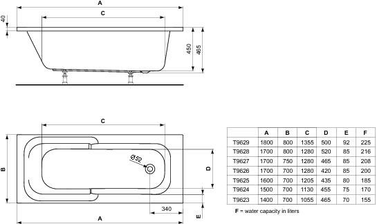 Wanna prostokątna Ideal Standard Playa 170 x 75 T962701 o pojemności 208l, wykonana jest z akrylu w kolorze białym. Do wanny należy dokupić nogi o numerze B156467 i zestaw odpływowo-przelewowy.