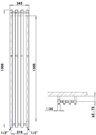 Grzejnik łazienkowy P.M.H. Invest PLUTO wersja BIAŁA P2W/4