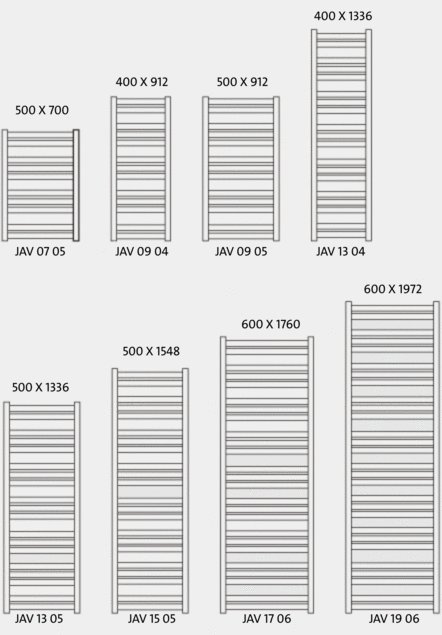 Klasyczna konstrukcja Javy sprawia, że montaż grzejnika jest bardzo łatwy. Wymiary i moc ciepną urządzenia można dopasować się do łazienki o różnej powierzchni. Aranżację łazienki ułatwia wybór ponad 220 kolorów z palety RAL.