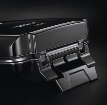 - Regulowane tylne nóżki do opiekania pod kątem (mięso) lub na płasko (kanapki/panini)
