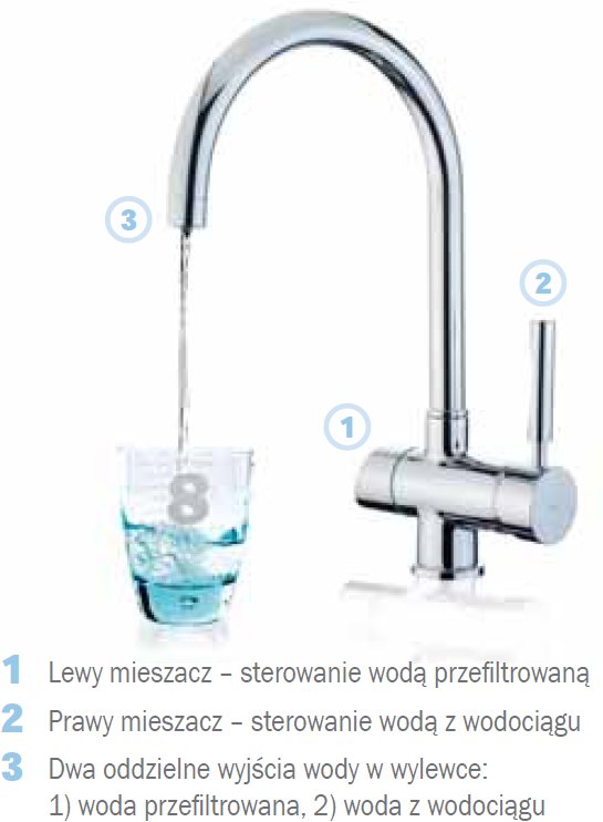 Bateria zlewozmywakowa OS 200 o numerze katalogowym 182000200 to stojąca mieszakowa bateria z wysoką ruchomą, wylewką obracalną o 360’ i oddzielnym wyjściem w wylewce na wodę przefiltrowaną. Po dokupieniu systemu filtrującego i wkładu pozbędziemy się nieczystości organicznych zawartych w wodzie a smak chloru zostanie zneutralizowany.