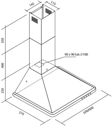 Okap kominowy o szerkości 60cm, marki TOFLESZ OK-2 Turbo 60 biały dysponujący wydajnością maksymalną 420m3/h, sterowany przyciskami, wyposażony w oświetlenie żarówkowe.