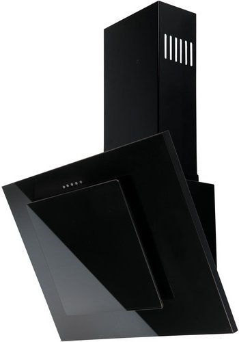 Okap kominowy, skośny o szerkości 60cm, marki TOFLESZ OK-3 Fiera Sprint 60 czarny dysponujący wydajnością maksymalną 500m3/h, sterowany przyciskami, wyposażony w oświetlenie LEDowe.