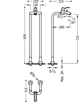 TRES 242.194.02 to bateria natryskowa/wannowa serii MonoClasic. Jest to bateria jednouchwytowa. Baterie cechuję klasyczny wygląd oraz prosta obsługa. W zestawie znajduję słuchawka antical w obrotowym statywem, oraz wąż w podwójnym oplocie, z ujęciem wody w podłodze